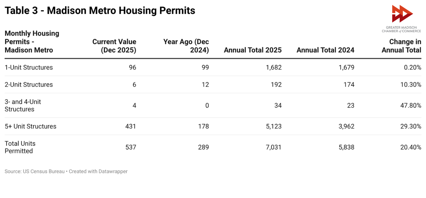 This month’s edition of Metro Metrics examines key performance indicators in Greater Madison’s economy and how they changed throughout 2025.