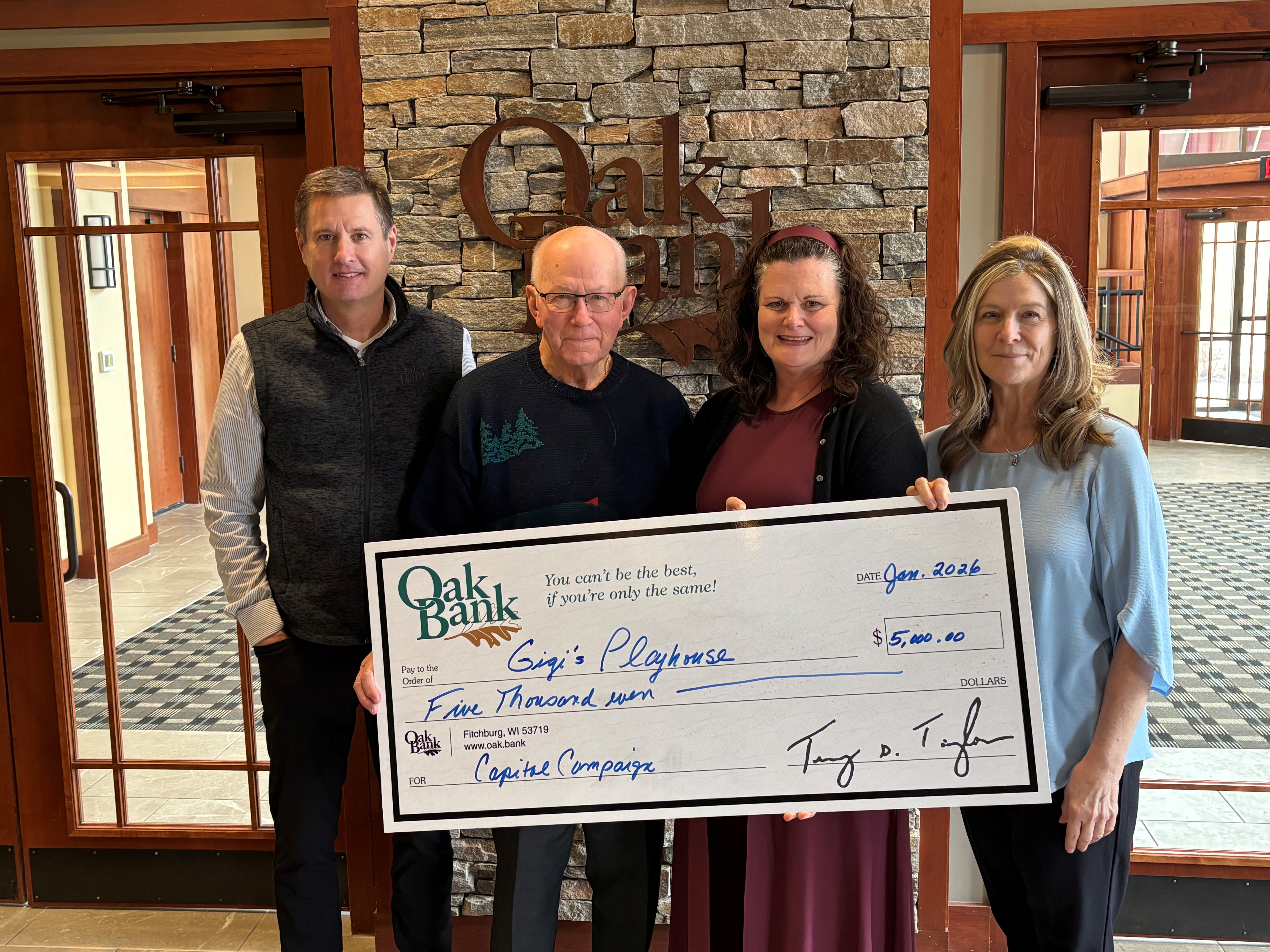 Oak Bank’s support of GiGi’s Playhouse Madison reflects its broader commitment to community-focused initiatives further underscoring the bank’s dedication to enhancing quality of life and care for individuals and families across the region.