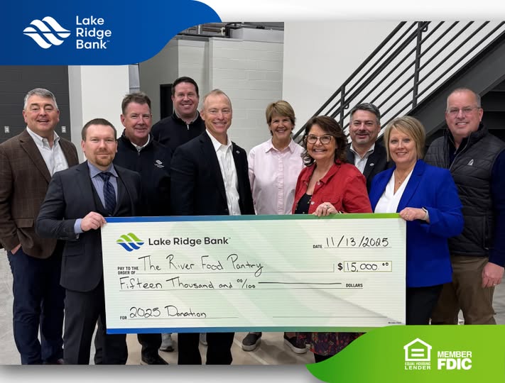 Recent donations include a $15,000 gift to River Food Pantry on Thursday. As a longtime partner, Lake Ridge Bank was involved in financing the nonprofit’s new building this year. The bank also provided $5,000 in support for the Goodman Community Center’s turkey dinner giveaway. Additionally, various Lake Ridge Bank locations are currently running food drives to bolster local pantries, such as WayForward (formerly MOM) and others.